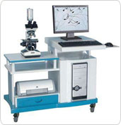 将精液样本通过显微镜进行超级放大,图像经电子摄像系统送入计算机。